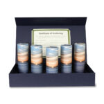 This kit includes five Ocean Sunset Scattering Tubes made from high-quality pre-consumer recycled paper, in a custom engravable case. The symbolic and meaningful design of the Ocean Sunset tokens serves as a reminder of the peace and hope that your loved one brought to your life. These 40 Cubic Inches Scattering Kits include 5 matching Scattering Tubes that are 40 cubic inches each, for a total of 200 cubic inches.