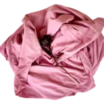 This shroud is made of a lightweight hemp, organic, and Pima cotton jersey from the USA. It has been soaked twice in a cauldron of rose petals and hibiscus flowers, turning it into a beautiful, feminine pink color.