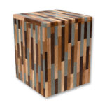 Each Repurposed Wood Urn is a beautiful handmade mosaic of pre-consumer upcycled wood. The urns are certified Fair Trade and are finished with a natural beeswax coating. No toxic adhesives or finishes are used in the construction of this urn and it is suitable for placement at home or in a cemetery niche. This urn is also suitable for burial in the earth.