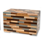 This Tribute Repurposed Wood Urn is a beautiful handmade mosaic of pre-consumer upcycled wood. The urns are certified Fair Trade and are finished with a natural beeswax coating. No toxic adhesives or finishes are used in the construction of this urn and it is suitable for placement at home or in a cemetery niche. This urn is also suitable for burial in the earth.